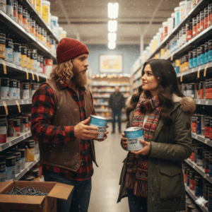 Kaum betrete ich den Baumarkt, muss ich meine Mütze absetzen und meine Jacke öffnen. Es ist überheizt hier drin und viel zu warm. Es riecht nach Holz, Farbe, Schweiß und etwas, das mich immer an Heimwerkerfrust erinnert.